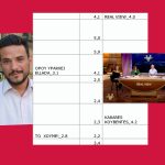 - Αυτό έχει ώς συνέπεια να δίνει μεγάλες πάσες στην τσουρούτικη εκπομπή της Καινούργιου η οποία χθές πήρε πάσα 28 και έπεσε στο 24% σε μέσο όρο. Παρότι έπεσε κατα 50% κάτω απο την πάσα εντούτοις τερμάτισε πρώτη με τον Λιάγκα ανεβασμένο και διψήφιο και όλους τους άλλος… στα μονά.