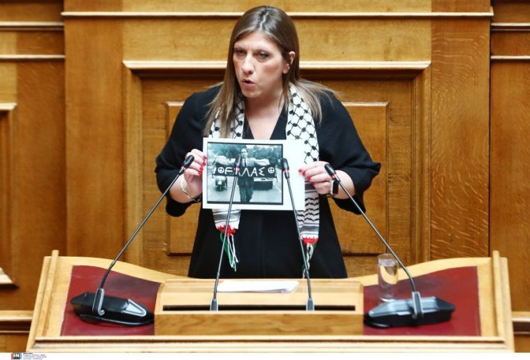 Με μαντήλα της Παλαιστίνης στον λαιμό, εμφανίστηκε σήμερα η Ζωή Κωνσταντοπούλου, στην Ολομέλεια της Βουλής κατά την επετειακή αναφορά στη μνήμη του Γρηγόρη Λαμπράκη.