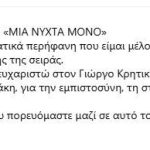 - Η ίδια χθες βράδυ στην ανάρτησή της με φωτογραφία που έχει τους δυο πρωταγωνιστές της σειράς, γράφει: