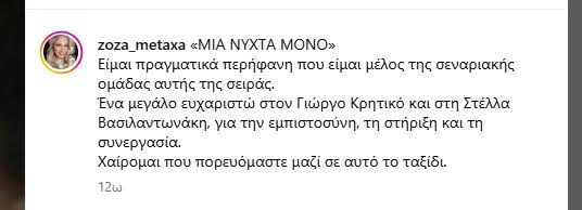 - Η ίδια χθες βράδυ στην ανάρτησή της με φωτογραφία που έχει τους δυο πρωταγωνιστές της σειράς, γράφει: