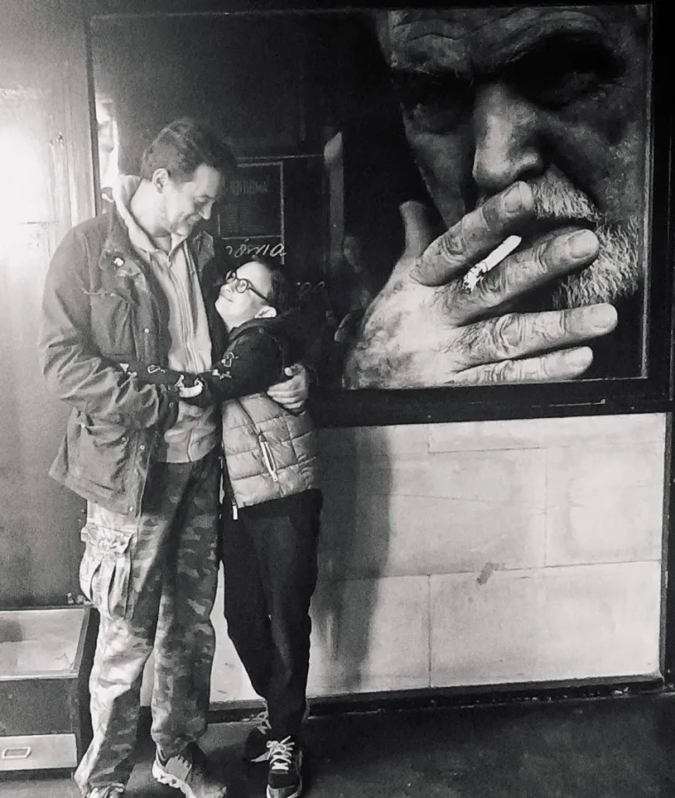 Πατέρας και γιος πόζαραν μπροστά από τη φωτογραφία του Κώστα Καζάκου. «Τρεις γενιές Καζάκοι» σημείωσε ο Κωνσταντίνος Καζάκος και δέχτηκε πολλά σχόλια για την τρυφερή φωτογραφία.