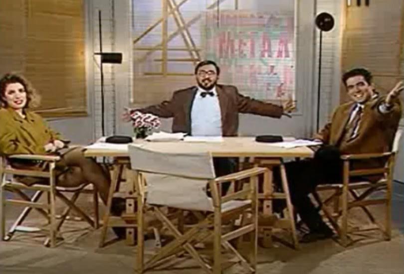 - Ο τότε ανερχόμενος κριτικός τηλεόρασης και κινηματογράφου επέλεξε να έχει στο πλευρό του το μοντέλο Ελένη Μενεγάκη και τον άντρα μοντέλο Νίκο Διαμανταρίδη που αργότερα μετακόμισε στην παρουσίαση του δελτίου καιρού του Mega.