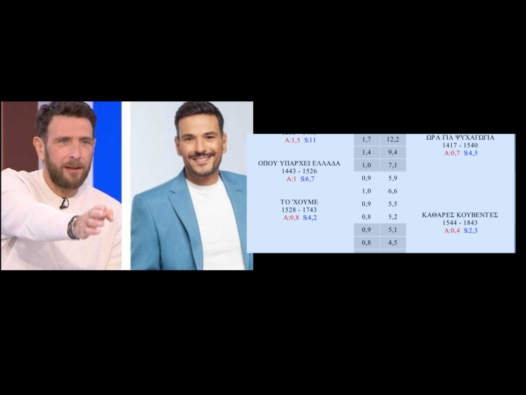 - Όμως αποδεικνύεται εκ του αποτελέσματος πώς η εξίσωση δεν βγαίνει καθώς τα νούμερα είναι πολύ χαμηλά τόσο για τον Τσουρό – που κάποιοι υποστηρίζουν πώς η εβδομάδα αυτή μπορεί να είναι και η τελευταία του – αλλά και για τον Πάτρα.