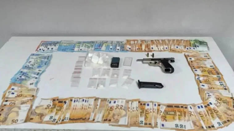 Σε έρευνα στο σπίτι του βρέθηκαν και κατασχέθηκαν ένα πιστόλι κρότου και 11.310 ευρώ.