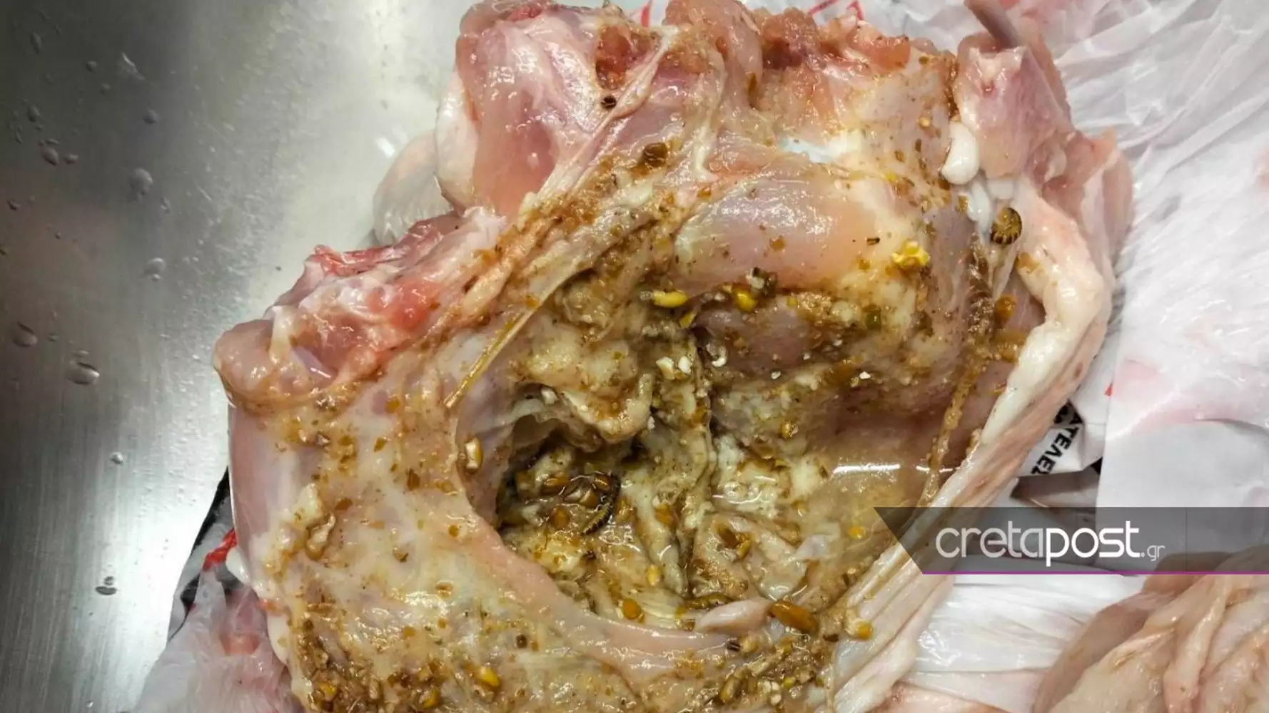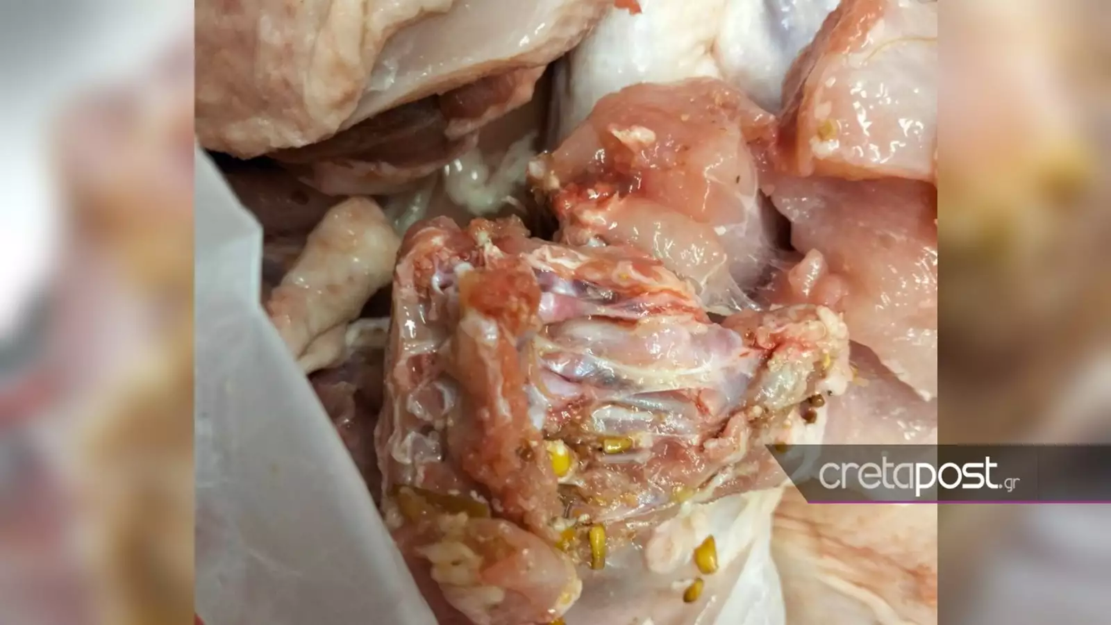 Δεν πίστευε στα μάτια της μια γυναίκα στο Ηράκλειο Κρήτης όταν αγόρασε κοτόπουλο από κρεοπωλείο της πόλης το οποίο ήταν γεμάτο σκουλήκια.