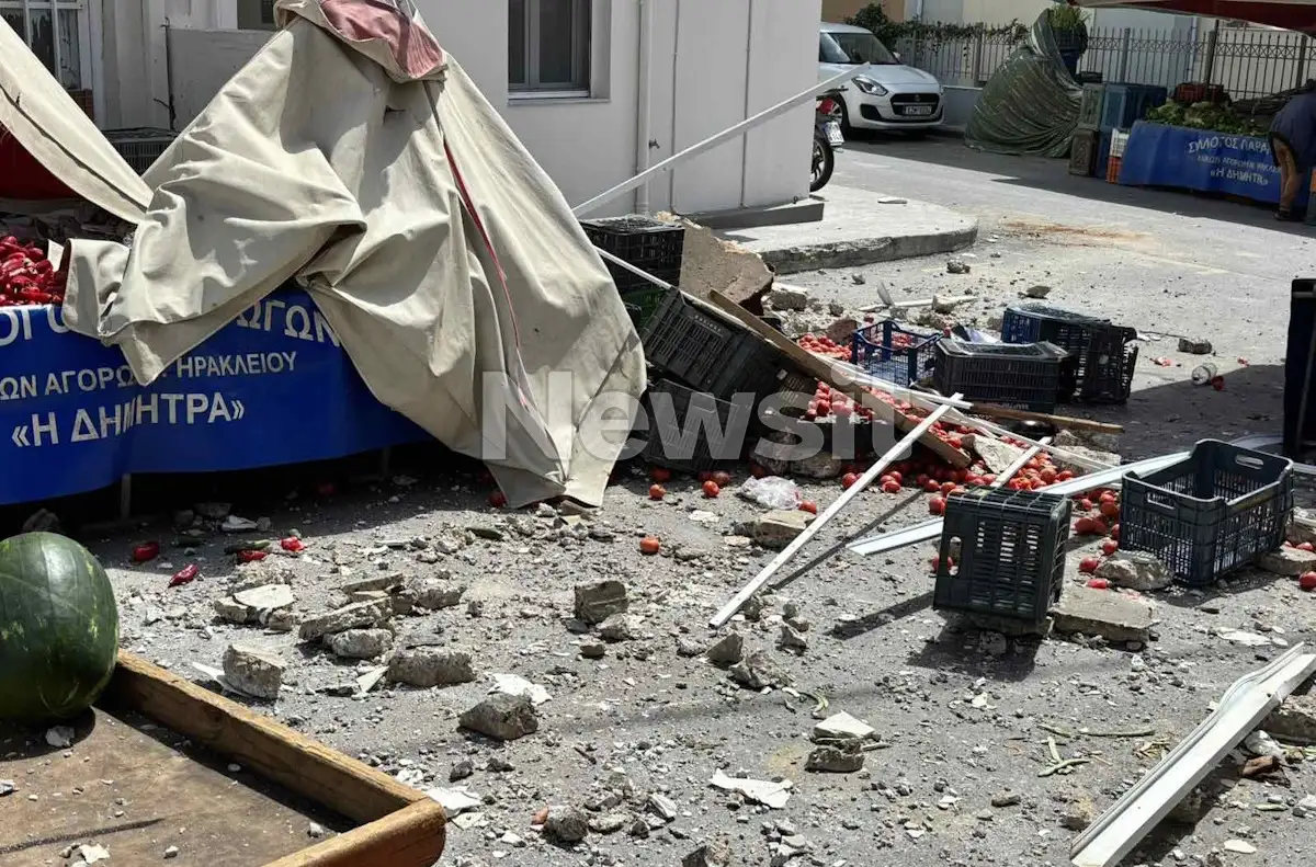 Πανικός επικράτησε το μεσημέρι της Δευτέρας (05.05.2025) στην λαϊκή αγορά στο Ηράκλειο, όταν τμήμα μπαλκονιού κατέρρευσε και έπεσε πάνω σε πάγκο.