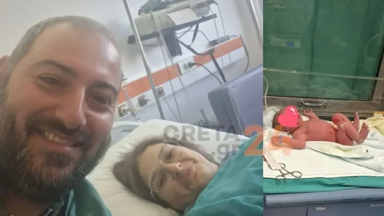 Η γυναίκα έφερε στον κόσμο το μωρό της, ένα κοριτσάκι, στον δρόμο για το μαιευτήριο στο Ηράκλειο. Όλα πήγαν καλά χάρη στην ψυχραιμία που επέδειξαν τόσο η ίδια όσο και ο σύζυγός της.