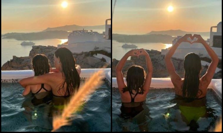 Χθες λοιπόν η τραγουδίστρια μοιράστηκε δύο τρυφερές φωτογραφίες με το κοριτσάκι της απολαμβάνοντας την υπέροχη θέα ενώ ταυτόχρονα έκαναν και τις βουτιές τους στην πισίνα του ξενοδοχείο όπου και διαμένουν στα Φηρά.
