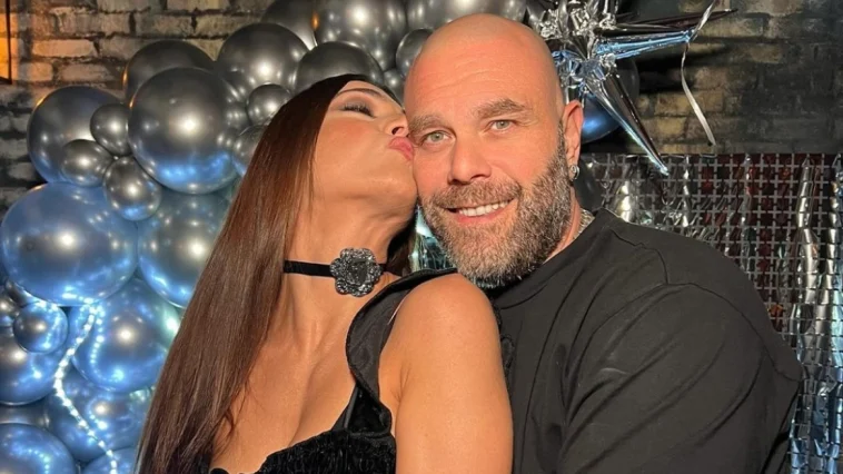 Το ζευγάρι πόζαρε αγκαλιασμένο στην κάμερα, με την τραγουδίστρια να δίνει ένα φιλί στον Μιχάλη Κουινέλη.