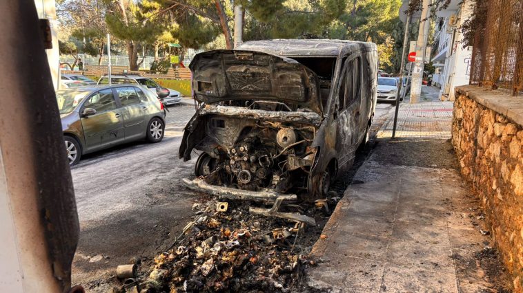 Η πυρκαγιά που προκλήθηκε, μάλιστα, επεκτάθηκε και σε Ι.Χ. που βρίσκονταν στο σημείο.