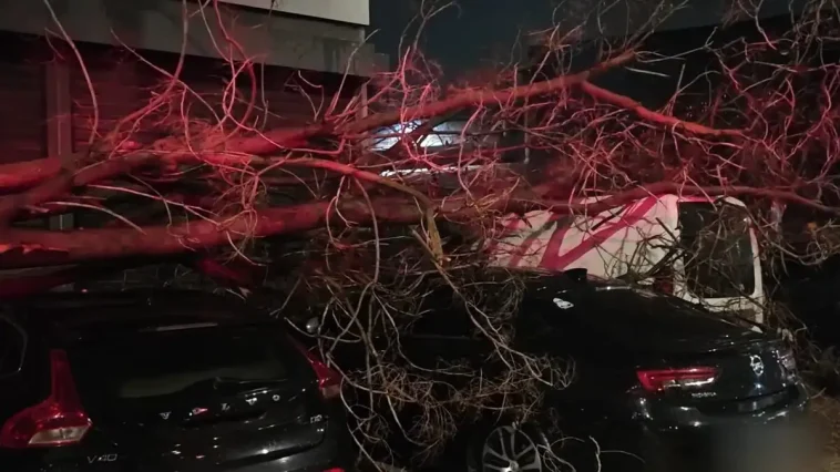 Μάλιστα, στην οδό Πειραιώς 178 ένα δέντρο έπεσε και καταπλάκωσε τέσσερα αυτοκίνητα.