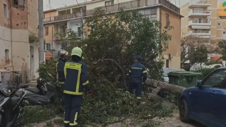 Εξαιτίας των ισχυρών ανέμων έπεσε το δέντρο στη συμβολή της οδού Βρυούλων και Κένεντι στην Καισαριανή, το οποίο και απομάκρυναν πυροσβέστες.