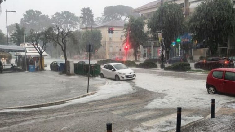 - Όπως διακρίνεται και στις φωτογραφίες, το χαλάζι είναι αρκετά πυκνό και έχει μέγεθος φουντουκιού, με αποτέλεσμα οι δρόμοι και τα πεζοδρόμια να δείχνουν χιονισμένα.