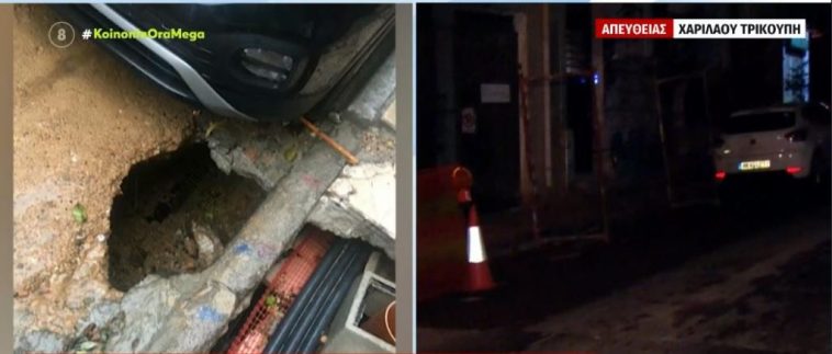 Στην οδό Χαριλάου Τρικούπη 98, χθες Πέμπτη το πρωί από την έντονη βροχή, το οδόστρωμα υποχώρησε, άνοιξε τρύπα, και η γυναίκα, που περνούσε από το σημείο έπεσε μέσα.