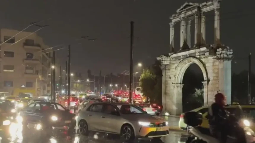 Στην Αττική, οι Αθηναίοι κινούνται στους δρόμους με ομπρέλες και αδιάβροχα λόγω της κακοκαιρίας, ενώ σε ορισμένα σημεία του οδικού δικτύου παρατηρείται αυξημένη κίνηση εξαιτίας των φαινομένων.