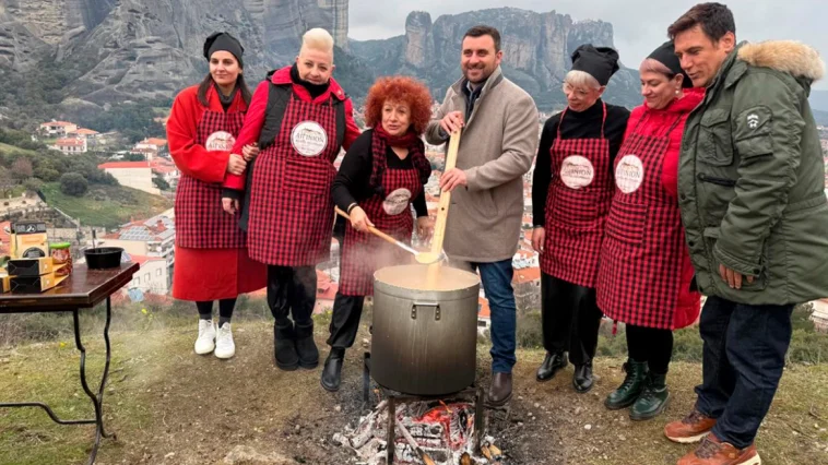 Ο δήμαρχος των Μετεώρων, Λευτέρης Αβραμόπουλος βρέθηκε στα περίχωρα για να δει από κοντά τις ετοιμασίες με τον δεξιοτέχνη του κλαρίνου, Θανάση Βασιλόπουλο, να συνοδεύει μελωδικά τις γυναίκες τοπικού πολιτιστικού συλλόγου.