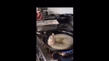 Και όσο τα ψάρια στην κυριολεξία σπαρταράνε, ο άντρας παίρνει με μία λαβίδα ένα από αυτά και το βάζει ζωντανό μέσα στο καυτό λάδι του τηγανιού.