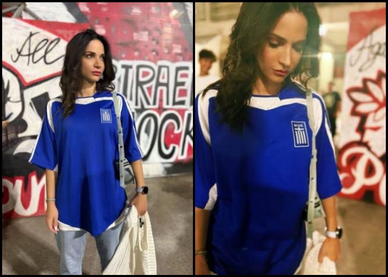 Φόρεσε την μπλούζα της Εθνικής μας ομάδας και πήγε στο “Γεώργιος Καραϊσκάκης” για να στηρίξει την ομάδα μας!
