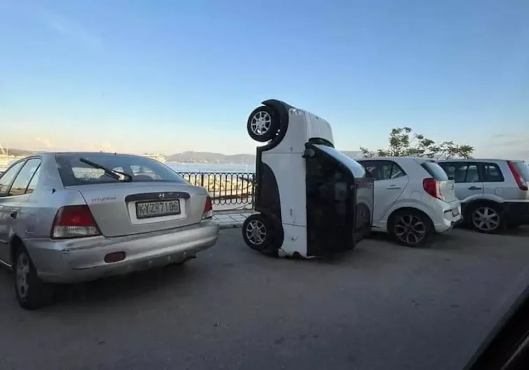 Οι πληροφορίες αναφέρουν ότι ο ιδιοκτήτης του το είχε παρκάρει κανονικά, αλλά λίγο αργότερα βρέθηκε να είναι κατακόρυφα.