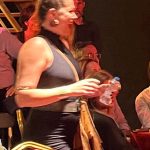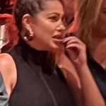 Η ηθοποιός έφτασε αργοπορημένη, φορούσε μαύρα και μποτάκια και κάθισε στο τραπέζι δίπλα στον Βασίλη Μπισμπίκη.