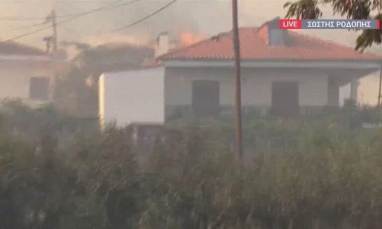 Δραματική είναι η κατάσταση στη Ροδόπη, με τις φλόγες από την πυρκαγιά να έχουν μπει στο χωριό Σώστης και τα πρώτα σπίτια να έχουν παραδοθεί στις φλόγες ενώ απειλούνται και άλλα.