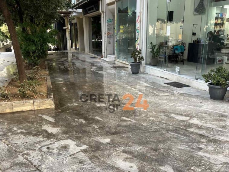 Η καθαριότητα είναι η μισή αρχοντιά, λένε, αλλά το Σάββατο έβαλε και σε κίνδυνο περαστικούς στον πεζόδρομο πίσω από τον Άγιο Μηνά στο Ηράκλειο.