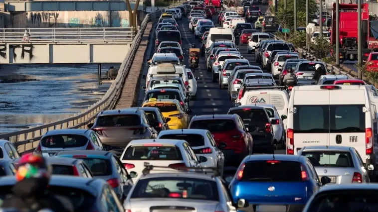Ένα απέραντο πάρκινγκ θυμίζει ο Κηφισός και η εθνική οδός Αθηνών-Κορίνθου καθώς η κίνηση στους δρόμους είναι αφόρητη και επεκτείνεται από την Ελευσίνα έως την Αθήνα.