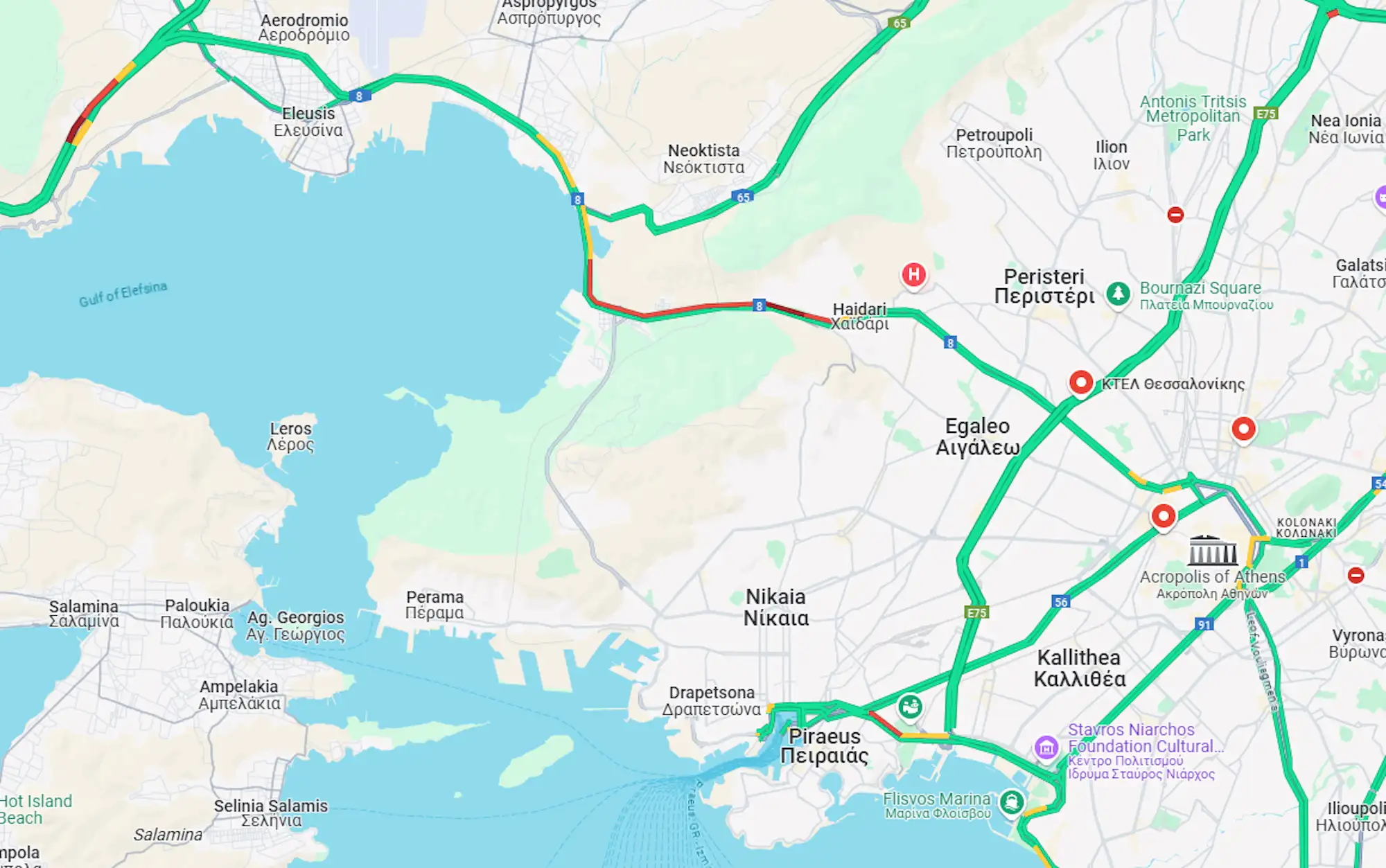 «Με βήμα σημειωτόν» κινούνται τα οχήματα και από το Χαϊδάρι μέχρι τον Σκαραμαγκά στην Λεωφόρο Αθηνών.