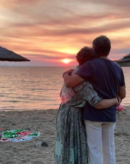 «Σήμερα έχουμε επέτειο γάμου 4 χρόνια. Δεν ανέβασα φωτογραφία με τον άντρα μου , ανέβασα αυτή την φωτογραφία των γονιών μου. Αυτή η φωτογραφία κλείνει 4 χρόνια σήμερα. Επειδή δεν είδαν ο ένας τον άλλο πολύ εκείνη την ημέρα, ενώ μας περίμεναν να πάμε στο γλέντι, αγκαλιαστήκανε να δουν μαζι το ηλιοβασίλεμα, γιατί έλειψε ο ένας στον άλλο. Αυτό είναι αγάπη για μένα. Αυτό κυνηγάω κάθε μέρα . Να καταλήξω να είμαι με τον άντρα μου 36 χρόνια και να αγαπιόμαστε ακόμα έτσι. »