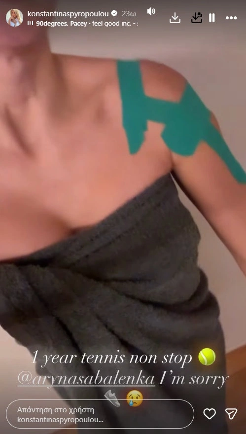 Το τένις, που τον τελευταίο χρόνο είχε γίνει αναπόσπαστο κομμάτι της καθημερινότητάς της, περνά σε δεύτερη μοίρα εξαιτίας ενός προβλήματος στον ώμο.