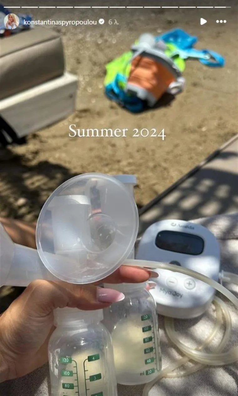 Η Κωνσταντίνα μοιράστηκε ένα φωτογραφικό στιγμιότυπο με το θήλαστρο και τα παιχνίδια παραλίας του Βλάσση.