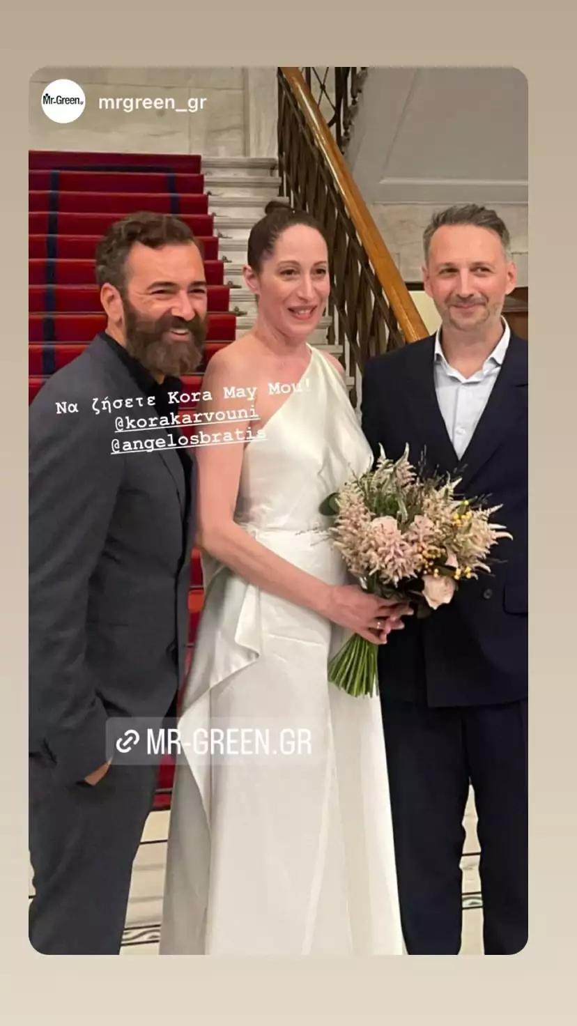 Χθες εν μέσω των γάμων είχα την τιμή και πάντρεψα και την γνωστή ηθοποιό κα Κόρα Καρβούνη με τον σύντροφο της Παναγιώτη Γαλανό. Τους εύχομαι βίον ανθόσπαρτον, να ζήσουν ευτυχισμένοι και αγαπημένοι».