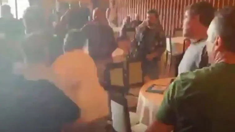 Πολλοί από τους συμμετέχοντες, σηκώθηκαν από τις θέσεις τους και λογομαχούσαν, ενώ άλλοι σπρώχνονταν και φώναζαν «ντροπή».