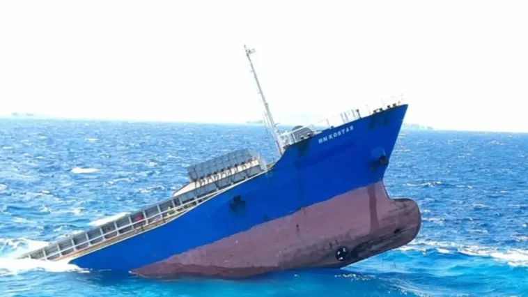 Το φορτηγό πλοίο «MN KOSTAS», σημαίας Σιέρα Λεόνε, που είχε προσαράξει τον Ιούλιο ανοιχτά της Σητείας στην Κρήτη, κατέληξε να βυθιστεί κάθετα προς τα δεξιά, με την πλώρη του να προεξέχει ακόμα από το νερό.