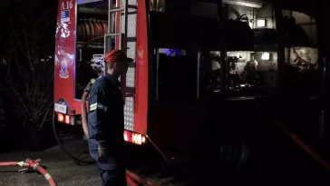 Για την κατάσβεση της φωτιάς επιχειρούν 18 πυροσβέστες με 6 οχήματα και ένα ειδικό βραχιονοφόρο όχημα.