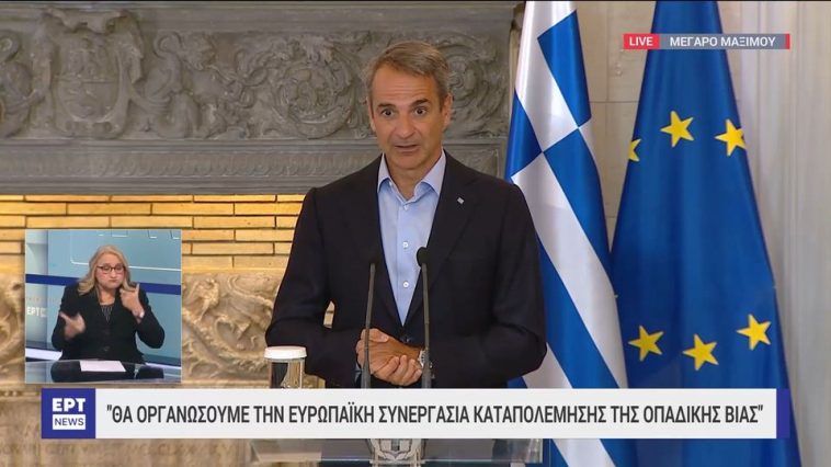 «Η χώρα μας φιλοξενεί τον ευρωπαϊκό τελικό του Super Cup. Κανονικά ένα τέτοιο γεγονός θα έπρεπε να σηματοδοτεί μόνο την ειρηνική συνάντηση φιλάθλων από διαφορετικές ομάδες και χώρες. Όμως, δυστυχώς, πραγματοποιείται στη σκιά ενός πένθους επειδή έτσι το θέλησαν κάποιες εγκληματικές συμμορίες» είπε ο πρωθυπουργός Κυριάκος Μητσοτάκης κατά τις κοινές δηλώσεις μετά τη τη συνάντηση με τον πρόεδρο της UEFA Αλεξάντερ Τσεφέριν και τη διευρυμένη σύσκεψη που ακολούθησε με τη συμμετοχή των αρμόδιων υπουργών και των Προέδρων των ΠΑΕ Ολυμπιακού, Παναθηναϊκού, ΑΕΚ και εκπροσώπου του ΠΑΟΚ, για τη βία στα γήπεδα.