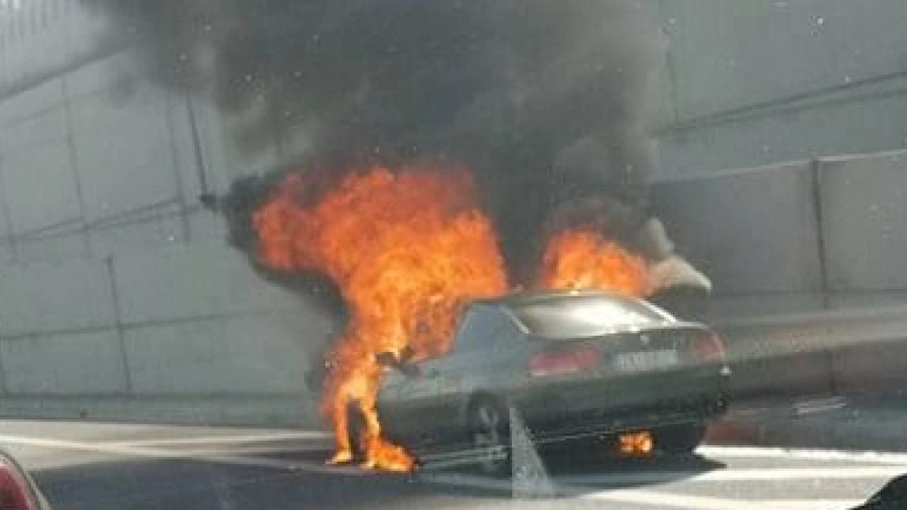 Η φωτιά που προκλήθηκε στο αυτοκίνητο κάτω από άγνωστες συνθήκες προκάλεσε πρόβλημα στην κυκλοφορία των οχημάτων. Από τις φλόγες πήραν φωτιά και τα φυτά στην άκρη του δρόμου.