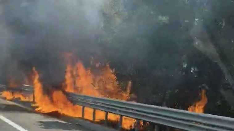 Φωτιά ξέσπασε λίγο μετά τις 12 το μεσημέρι στη Λάρισα, στην εθνική οδό Αθήνας Θεσσαλονίκης, στο ύψος Γυρτώνης, στο ρεύμα προς Αθήνα.