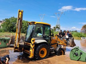 - Η κατάσταση είναι εξαιρετικά δύσκολη με τα νερά να έχουν φτάσει σε μεγάλο ύψος. Είναι χαρακτηριστικό πως καταγράφηκε απεγκλωβισμός πολιτών από τον πρώτο όροφο οικίας, ο οποίος δεν ήταν δυνατόν να γίνει με άλλο τρόπο παρά με φορτωτή.Δείτε εικόνες: