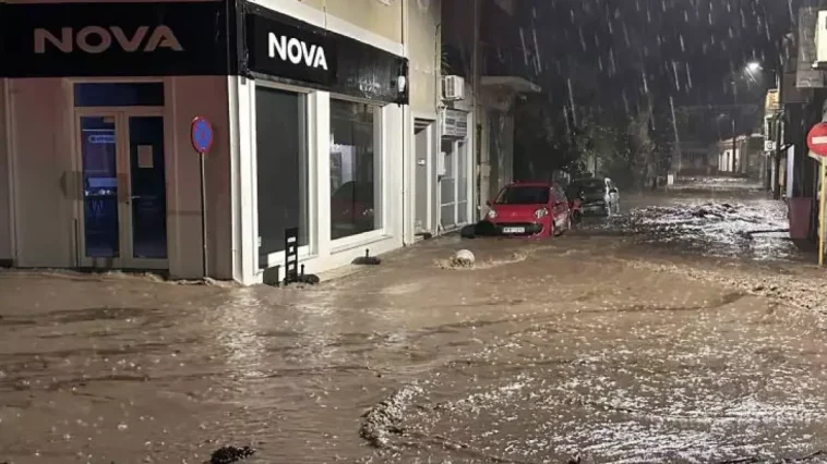 Σοβαρά προβλήματα προκάλεσε η σφοδρή καταιγίδα που έπληξε το βράδυ της Δευτέρας τη Σκάλα Καλλονής στη Λέσβο, μετατρέποντας δρόμους σε ποτάμια και πλημμυρίζοντας δεκάδες σπίτια και επιχειρήσεις.