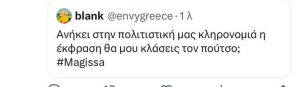 Αν και τόσο χάλια δεν νομίζω να τα έκανε. Περισσότερο επίπεδο, ποιότητα και ήθος θα είχε σίγουρα από αυτό το χάλι και τον εκμαυλισμό που ζούμε. Οποισδήποτε θα τα πήγαινε καλύτερα από τον Μητσοτάκη. Τουλάχιστον, ο Κασσελάκης δηλώνει ότι είναι γκέι. Έχει και η ΝΔ τόσες τελειωμένες δηλωμένες και αδήλωτες που ο Κασσελάκης είναι πολύ αρρενωπός μπροστά τους. Κατι Πατέληδες και Γιατρομανωλάκηδες κουνίστρες. Τον Κασσελάκη μόνο πρόσεξες? Πολύ επιλεκτικό κράξιμο κάνεις.