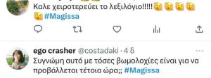 - Στις 10 το βράδυ ακούστηκαν βρισιές χοντρές με αποτέλεσμα να έρθει και το ξέσπασμα «Θα μου κλάσεις τον πο@@τσο» ακούσαμε και μας πέσαν τα μαλλιά.