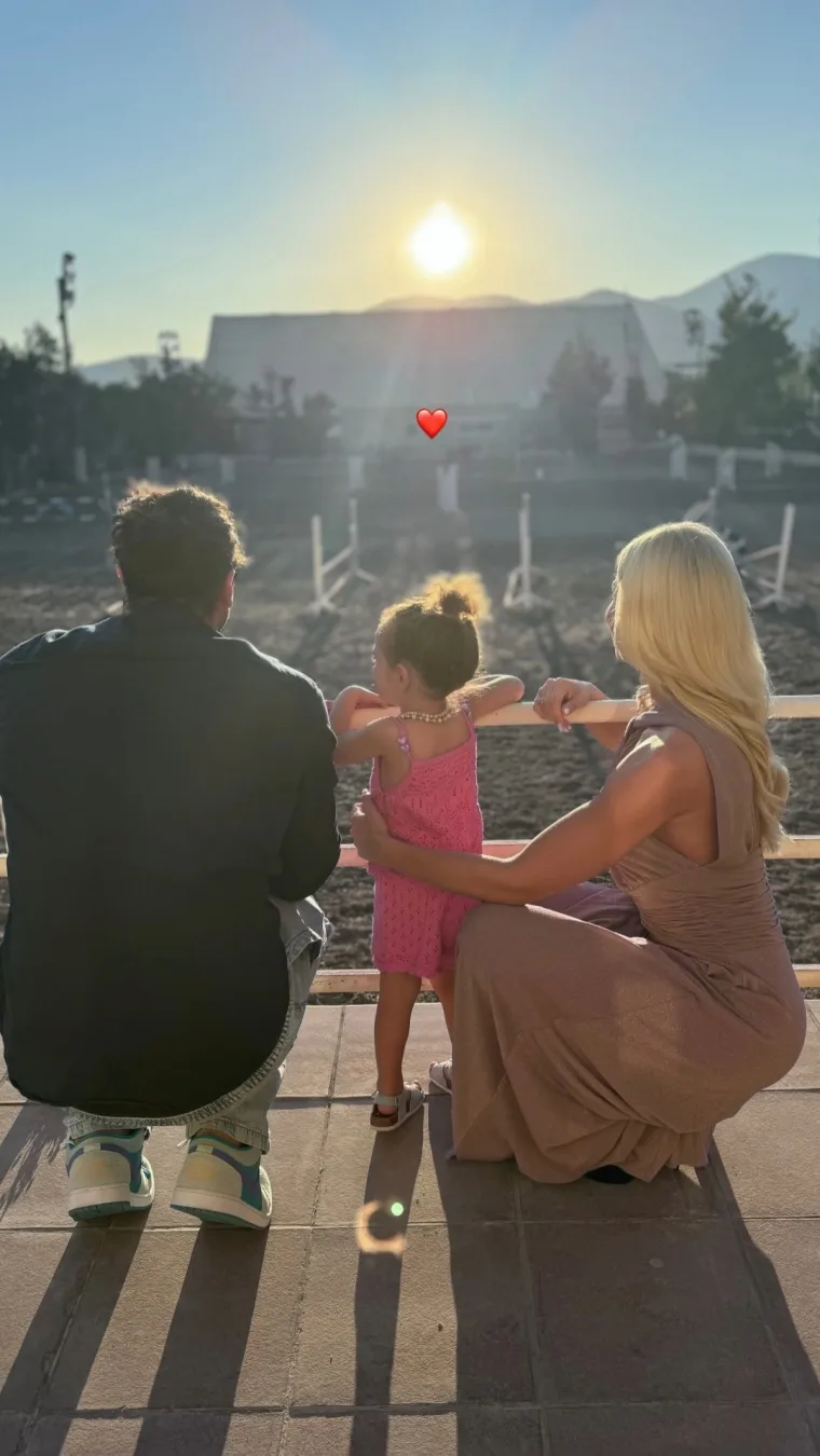 Η εικόνα, που δημοσιεύτηκε σε story στο Instagram, αποπνέει οικογενειακή θαλπωρή και απλότητα. Η Ιωάννα κρατά την κόρη τους, με τον Κωνσταντίνο δίπλα της, σε ένα φυσικό και ήρεμο περιβάλλον.