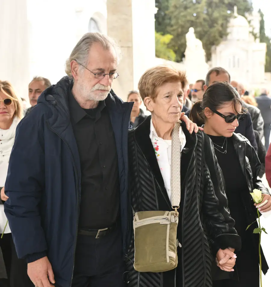 Φωτογραφίες από την τελετή που δείχνουν τη συγκίνηση και τη θλίψη των παρευρισκόμενων. Μια από τις πιο χαρακτηριστικές εικόνες είναι εκείνη της συντετριμμένης συζύγου του, που δεν μπορεί να συγκρατήσει τη συγκίνησή της.