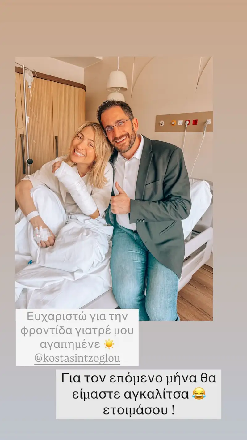 Η Μαρία Ηλιάκη, η οποία δημοσίευσε φωτογραφία της από το νοσοκομείο στα Instagram stories της, δεν αποκάλυψε τι είδους ατύχημα είχε, όμως έβγαλε selfie με τον γύψο στο χέρι αλλά φωτογραφήθηκε και με τον γιατρό που έχει αναλάβει την φροντίδα της.