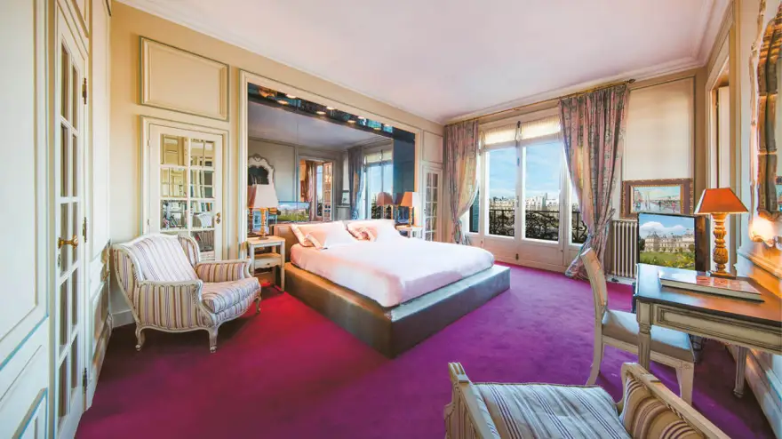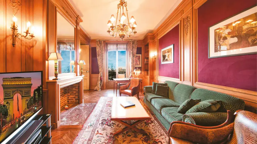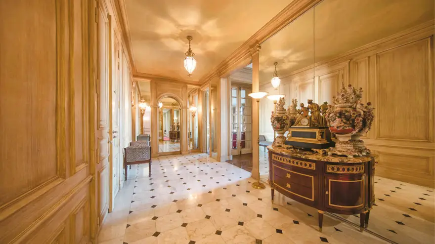 Στο εξαιρετικά καλαίσθητο κτήριο οι ένοικοί του από τον 18ο αιώνα ήταν ιδιαίτερα εύποροι αριστοκράτες και στο εσωτερικό του διαμερίσματος Τράγκα κυριαρχούν το μάρμαρο, το ξύλο και τα γήινα χρώματα, που απολάμβανε πολύ συχνά το ζεύγος, αφού το Παρίσι ήταν από τις πιο αγαπημένες τους πόλεις.