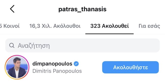 Πιο συγκεκριμένα, ο παρουσιαστής έκανε τις τελευταίες ημέρες follow τον Δημήτρη Πανόπουλο.