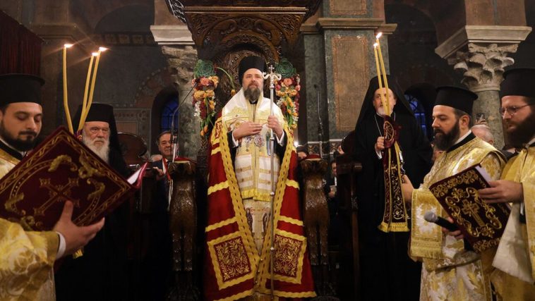 - Ο Μητροπολίτης Νεαπόλεως και Σταυρουπόλεως Βαρνάβας, ως αναπληρωτής τοποτηρητής, επέδωσε στον νέο μητροπολίτη της Θεσσαλονίκης, την ποιμαντορική ράβδο ευθύνης, για το νέο του ξεκίνημα.Εκπρόσωπος του Οικουμενικού Πατριαρχείου ήταν ο μητροπολίτης Χαλκηδόνος Εμμανουήλ, ως πνευματικός πατέρας, του έδωσε ακόμη μια ευχή για το νέο του ξεκίνημα, ενώ ο πρώην μητροπολίτης Θεσσαλονίκης ‘Ανθιμος βρισκόταν από νωρίς στον ναό της Του Θεού Σοφίας και στάθηκε στο πλάι του νέου μητροπολίτη.Την κυβέρνηση εκπροσώπησε ο υπουργός Επικρατείας Μάκης Βορίδης, ο οποίος μετέφερε τον χαιρετισμό του πρωθυπουργού Κυριάκου Μητσοτάκη αλλά και τη δέσμευση του για στενή συνεργασία μαζί τον νέο μητροπολίτη Θεσσαλονίκης.Οι πανηγυρικές εκδηλώσεις θα ολοκληρωθούν την Κυριακή στις 7 π.μ., με την ακολουθία του όρθρου και το αρχιερατικό συλλείτουργο στον προσκυνηματικό ναό του Αγίου Δημητρίου του Πολιούχου της Θεσσαλονίκης. Μετά το πέρας της θείας λειτουργίας, ο μητροπολίτης θα δεχθεί τις ευχές κλήρου και λαού, στον ιερό ναό Αγίου Δημητρίου.