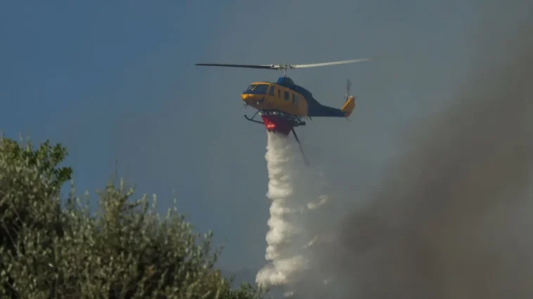 Στο σημείο επιχειρούν ισχυρές δυνάμεις της πυροσβεστικής, καθώς 50 πυροσβέστες, 2 πεζοπόρα τμήματα, 17 οχήματα, 3 αεροπλάνα και 2 ελικόπτερα δίνουν μάχη με τις φλόγες.