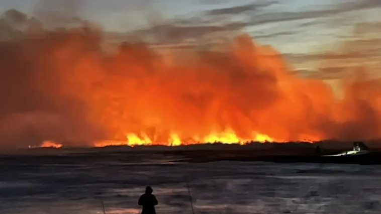 Μάλιστα, οι φλόγες είναι ορατές από χιλιόμετρα μακριά, κάτι που προκαλεί έντονη ανησυχία στους κατοίκους και των γύρω οικισμών.